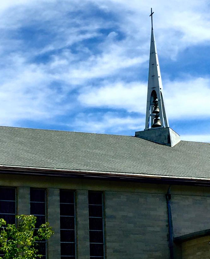 I was focusing on the three bells above the chapel, but noticed the cloud